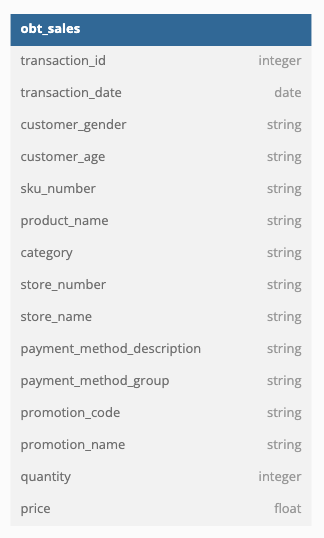 Reusing the star schema I showed above, the outcome OBT would look like: